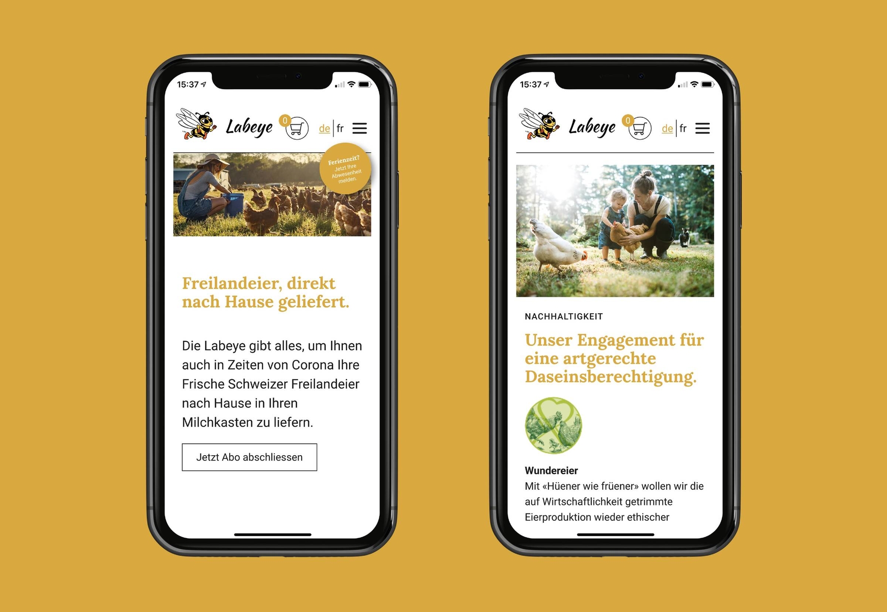 Die Labeye frigemo AG beliefert Schweizer Haushalte mit frischen Eiern – und das seit 1988. Eier und weitere Produkte gehen via Website direkt vom Hof and den Endkonsumenten. Eine neue Website soll einerseits dem Kunden die Werte von Labeye näherbringen und andererseits den Produktekauf erleichtern.