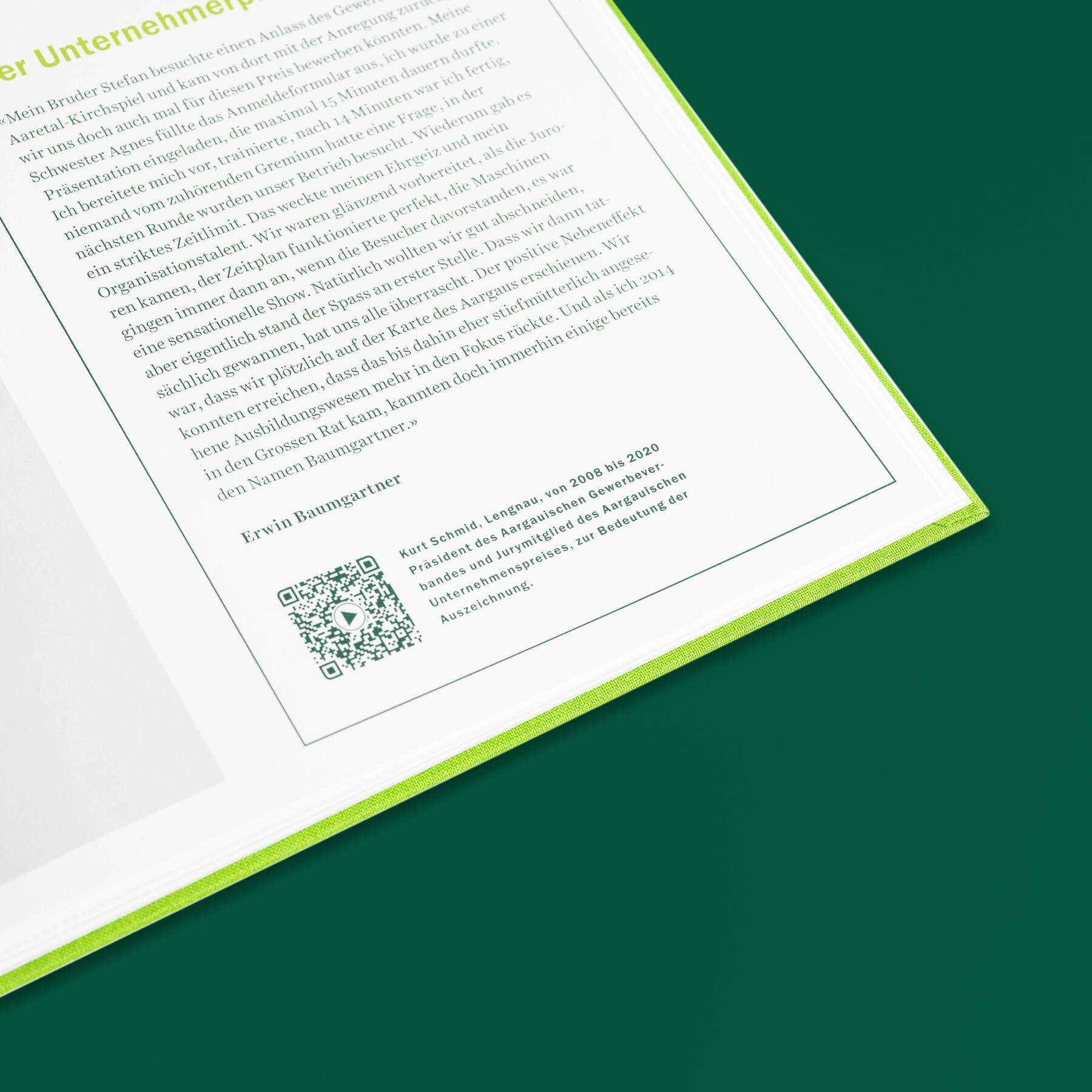 Durch die Jubiläumspublikation hindurch verteilt finden ihre Leser mehrere QR-Codes. Anhand dieser QR-Codes gelangt man auf weitere Fotos und ausführliche Interviews.