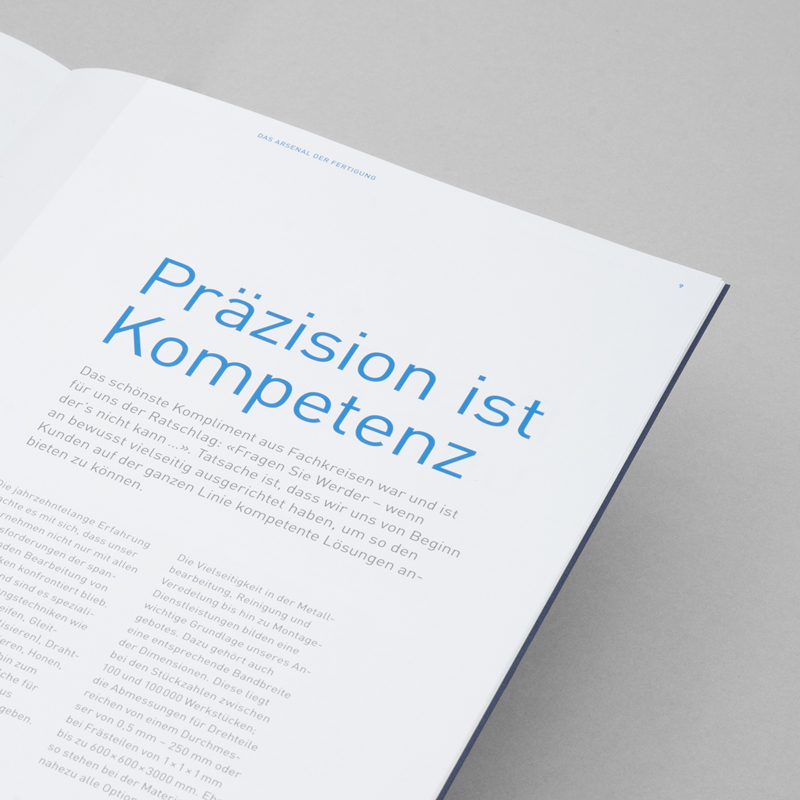 Markenführer Samuel Werder AG überzeugt als feinwerktechnisches Unternehmen mit Präzision, Qualität und Authentizität. Das Dienstleistungsspektrum und die darin gefestigten Werte sollen dank der Imagebroschüre an bestehende und neue Kundinnen und Kunden vermittelt werden.