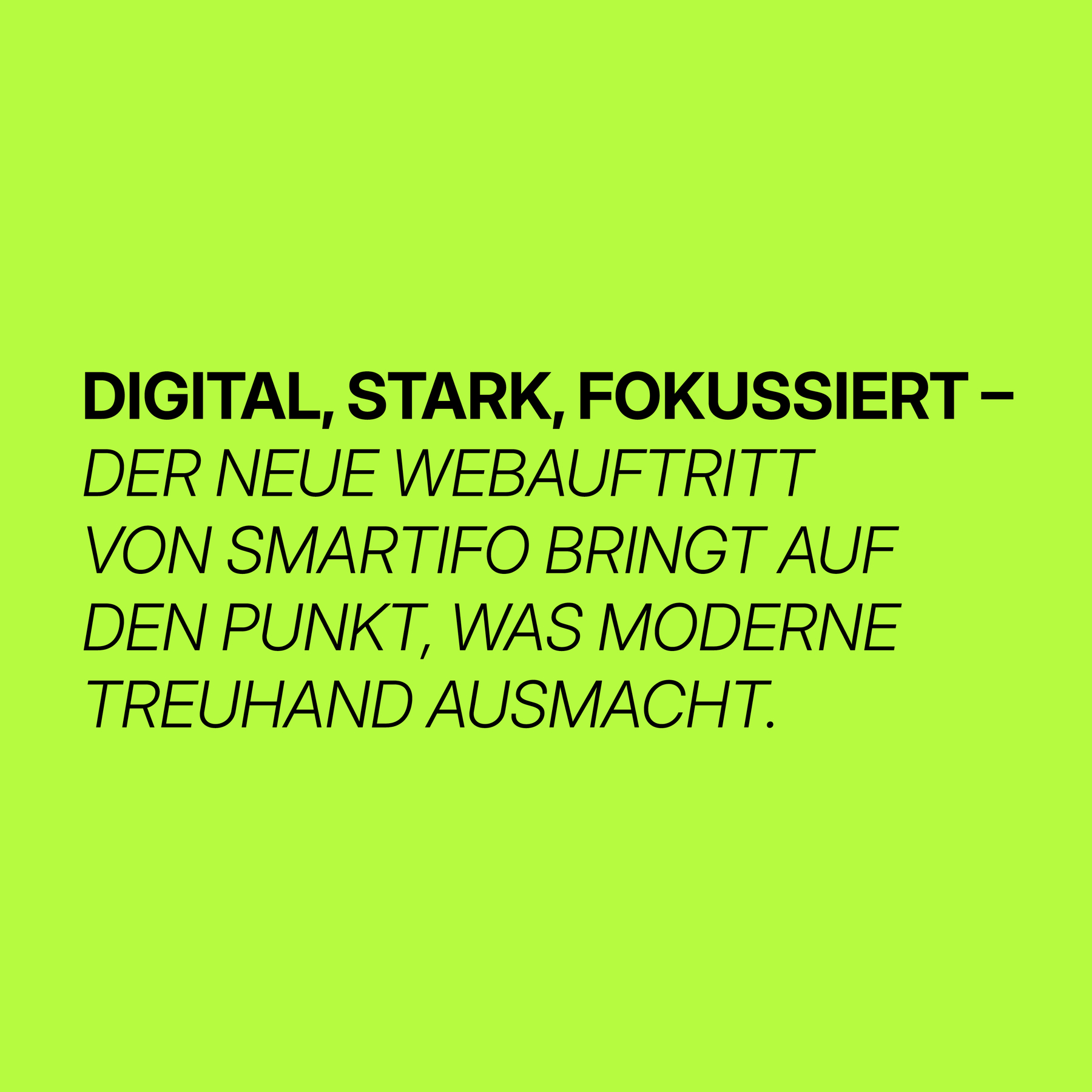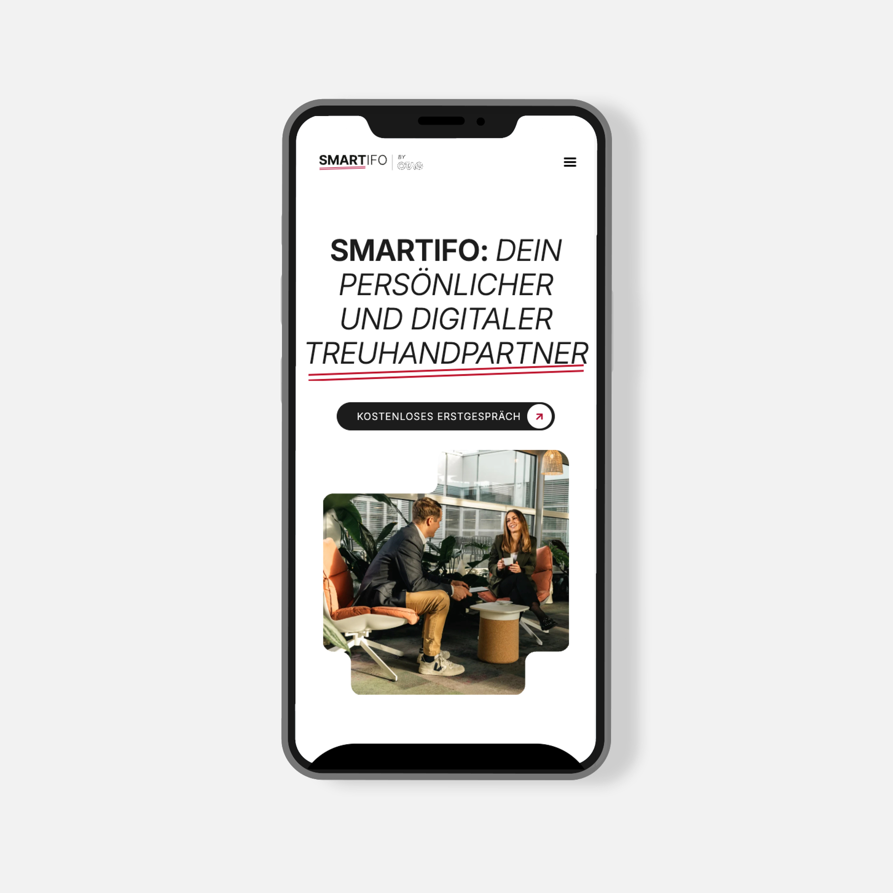 Smartifo bietet eine moderne, flexible und innovative Treuhandlösung, die Digitalisierung und persönliche Betreuung ideal vereint. Die neue Website soll dieses Angebot klar und verständlich kommunizieren, in Form eines kompakten, visuell ansprechenden Landingpage, welche die drei Leistungspakete übersichtlich darstellt und Besucher:innen einen schnellen, professionellen Überblick verschafft.