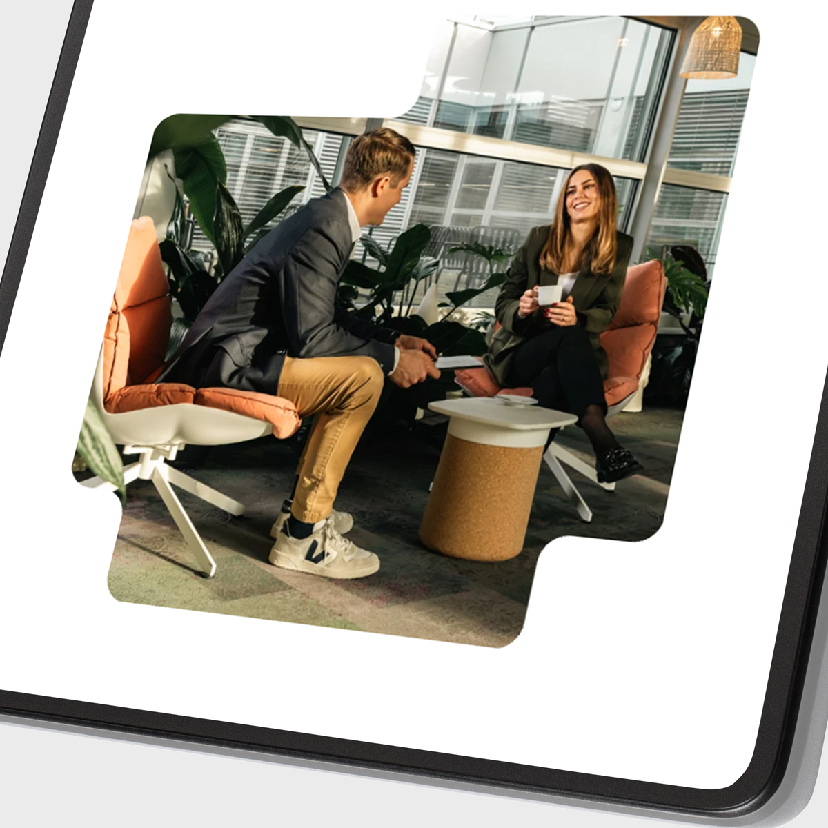Das Bildkonzept zeigt echte Menschen in authentischen Gesprächssituationen, modern inszeniert in einem hellen, urbanen Büroumfeld. Der Fokus liegt auf Persönlichkeit, Austausch und Nähe, ohne dabei gestellt zu wirken. So entsteht ein sympathischer und vertrauenswürdiger Eindruck.